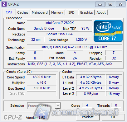Abbiamo infine effettuato dei test in overclock andando a variare i parametri all'interno del BIOS. Siamo rimasti un pochino delusi dalla libertà offerta dato che non c'è stato possibile variare il moltiplicatore ed i voltaggi a piacimento in quanto è prevista solo la variazione del moltiplicatore della modalità Turbo e dell'offsett del voltaggio dato in automatico dalla scheda madre. Tuttavia, impostando il moltiplicatore della modalità Turbo a 46X e l'offsett del voltaggio della CPU a +0,06, siamo riusciti a far partire il sistema a 3,4GHz con Turbo a 4,6GHz. Per constatare tale clock, abbiamo stressato il sistema con il software Prime95, tenendo aperto CPU-Z per rilevare la massima frequenza raggiunta con il relativo voltaggio.