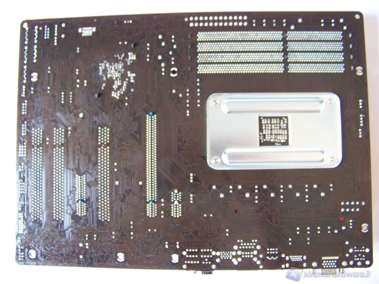 La scheda si presenta di color marrone scuro con inserti blu per quanto riguarda gli slot PCI-E x16 e due dei quattro slot per le RAM.