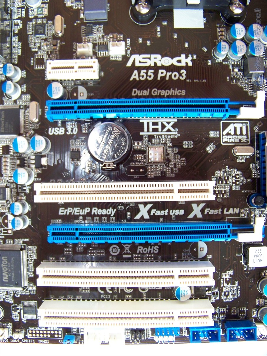 Come notiamo dall’immagine soprastante, la nuova ASRock A55 Pro3 è dotata di ben due alloggiamenti PCI-E x16, un alloggiamento PCI-E x1 e tre slot PCI classici.