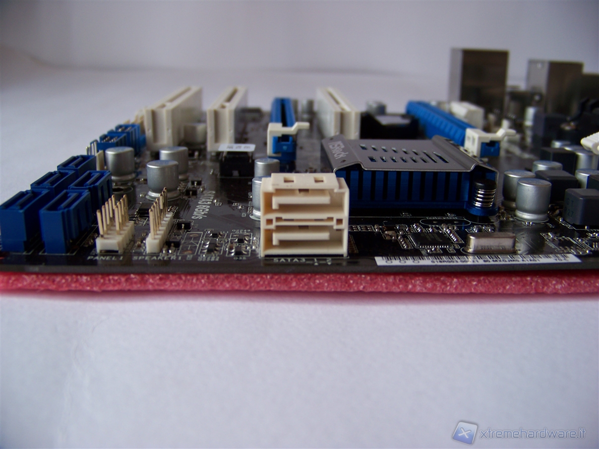 Nella parte bassa dell’immagine, subito sotto gli slot per le memorie notiamo il connettore 24 pin per l’alimentazione della mainboard.