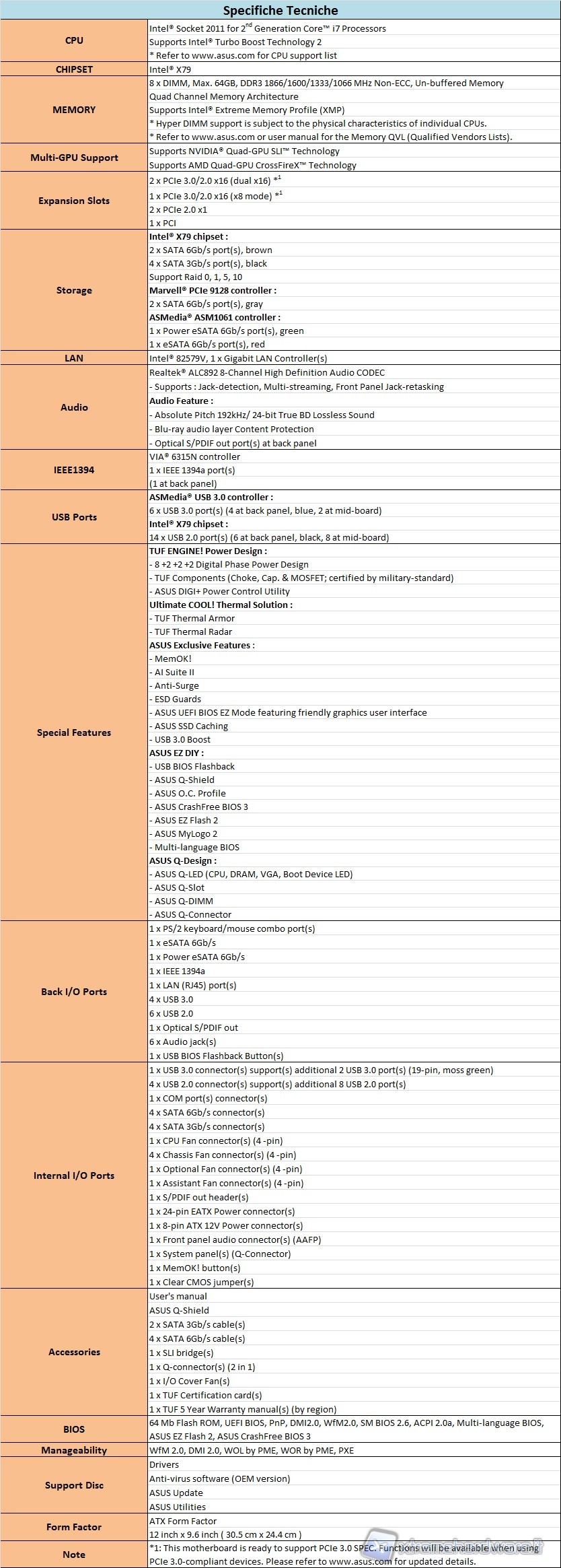 In figura le specifiche tecniche complete, disponibili anche sul sito del produttore