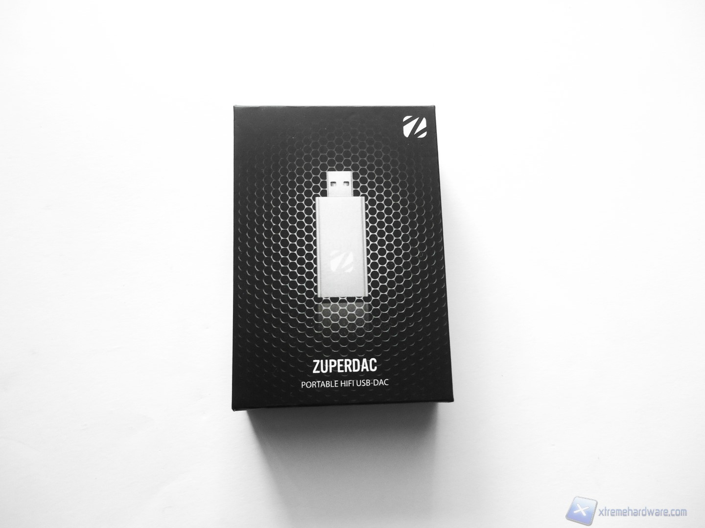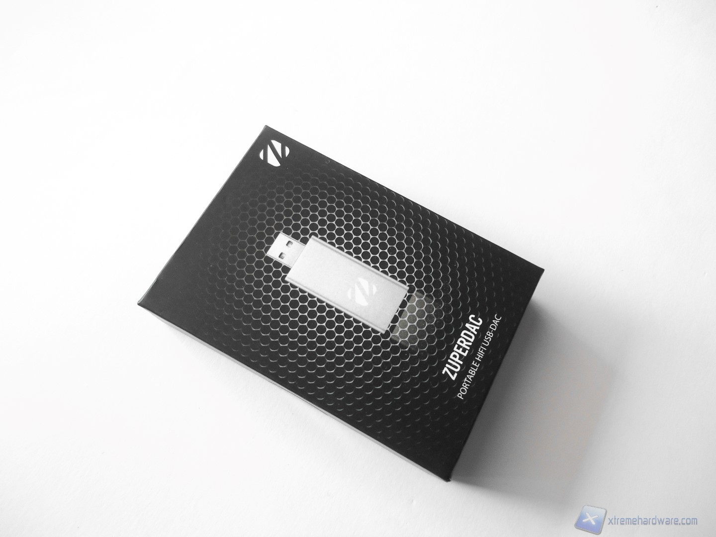 Ora passiamo all’analisi della confezione e del bundle accompagnatorio di questo DAC. Come possiamo vedere dalle foto abbiamo una piccola scatoletta rettangolare di colore nero con al centro l’immagine del prodotto stesso. Più in basso troviamo il nome del prodotto mentre in alto a destra è presente il logo dell’azienda.