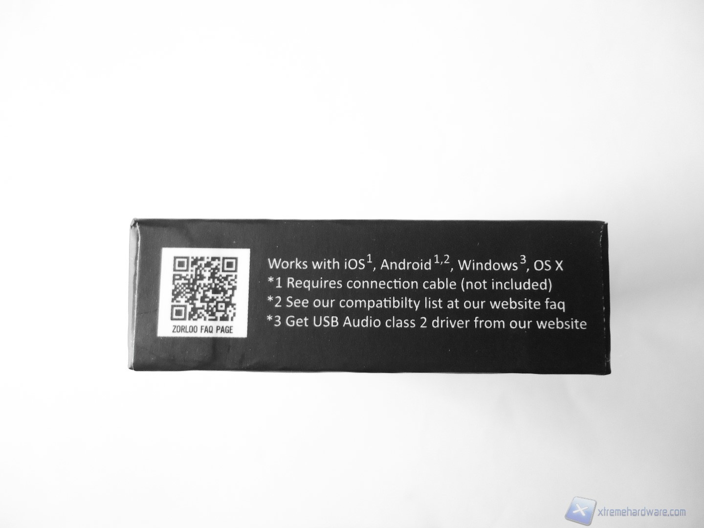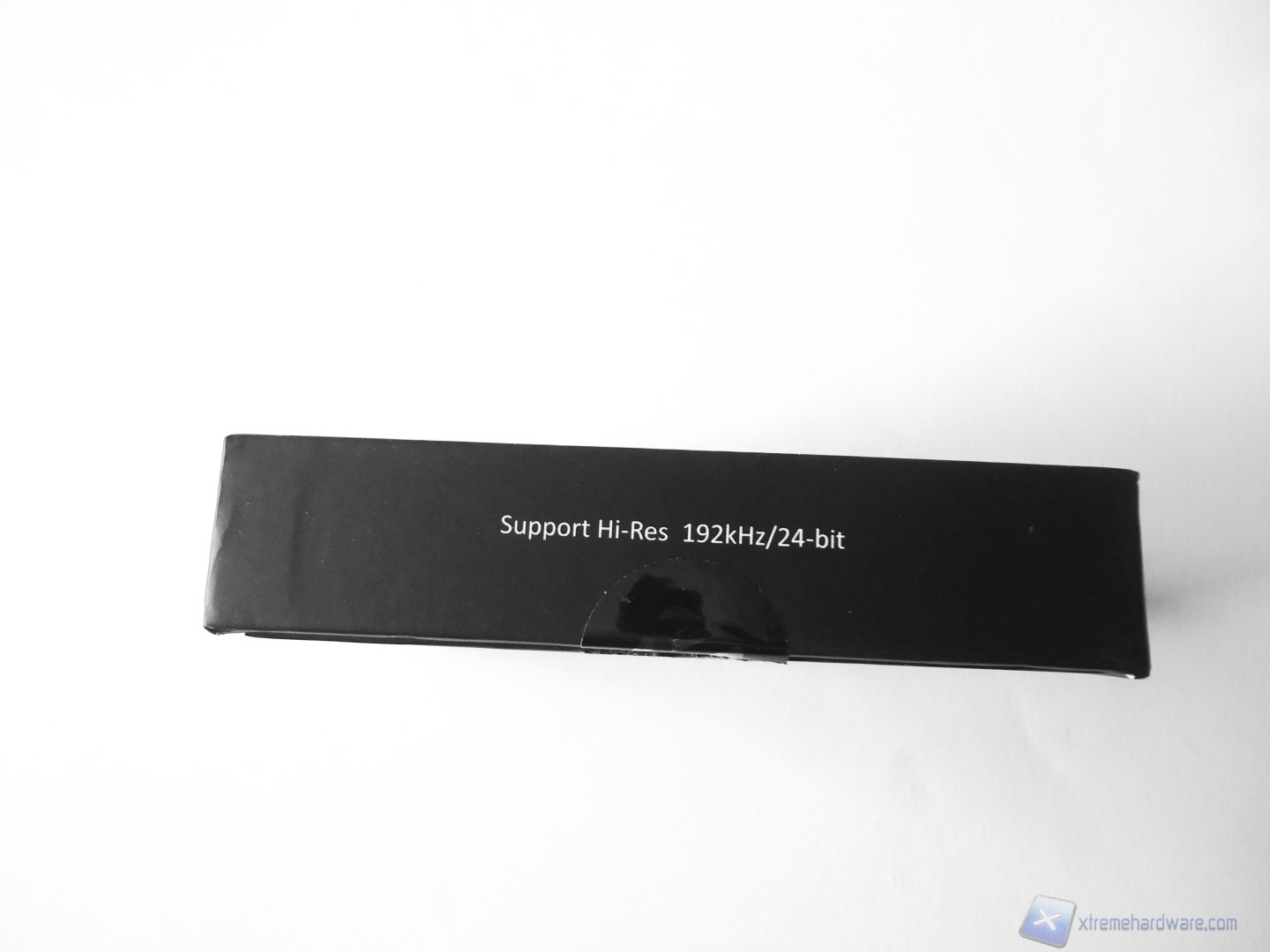 Sui vari lati della scatola troviamo alcune caratteristiche sul prodotto, come il supporto dei 192 kHz e dei 24-bit, oltre che il logo dell’azienda e le varie compatibilità del prodotto.