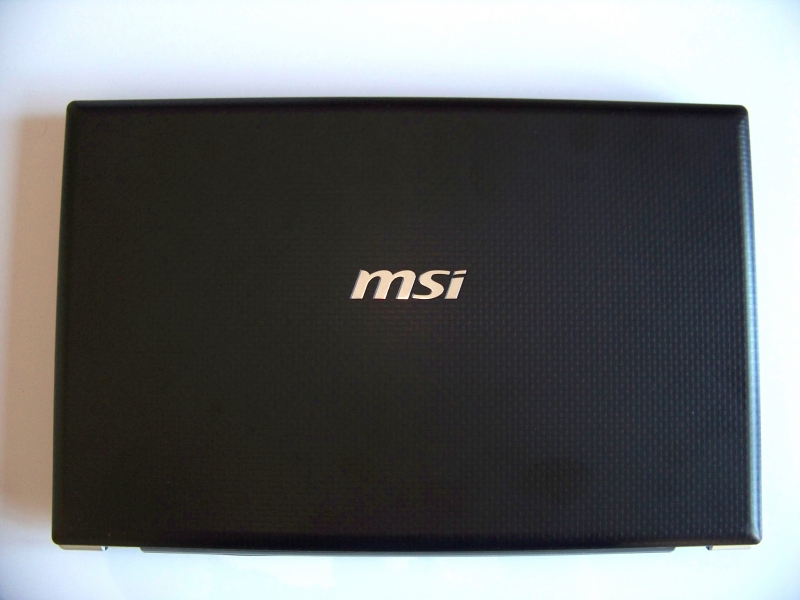 Il notebook si presenta completamente nero con bordi argentati e una scritta MSI, argentata anch’essa,  al centro della parte superiore dello chassis.