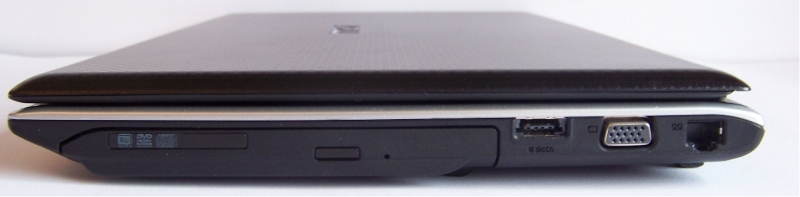 Sulla destra, invece, possiamo trovare l’unità ottica, l’uscita eSata, l’uscita D-Sub (VGA) per il collegamento di un monitor esterno e la classica porta LAN 10/100/1000. Da segnalare che l’eSata è in realtà una Power eSata, ovvero consente di auto-alimentare il dispositivo, senza utilizzare una alimentazione USB supplementare.