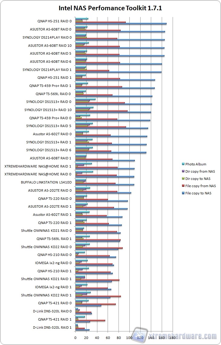 Nell’ultimo test, ovvero lo scambio di file e la gestione di photo album l’HS-251 trova nuovamente la vetta facendo registrare il valore più alto nel trasferimento di file verso il NAS.