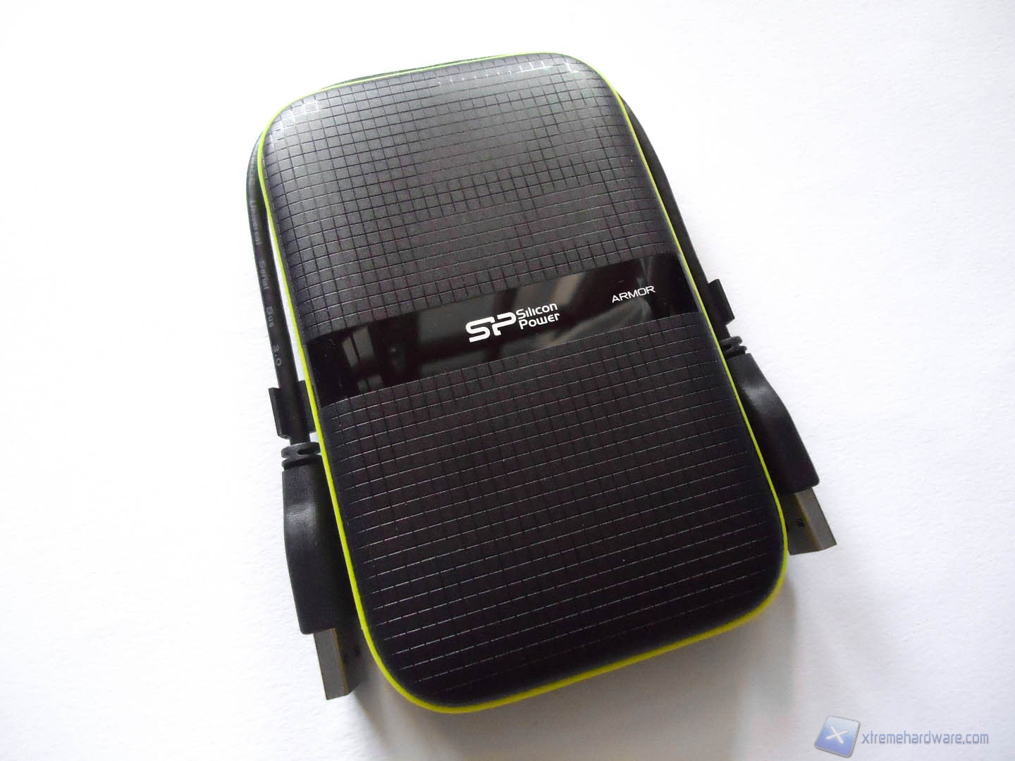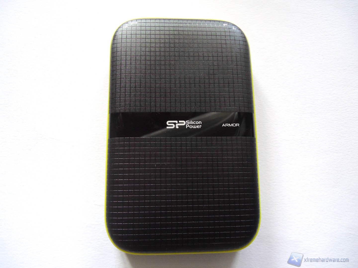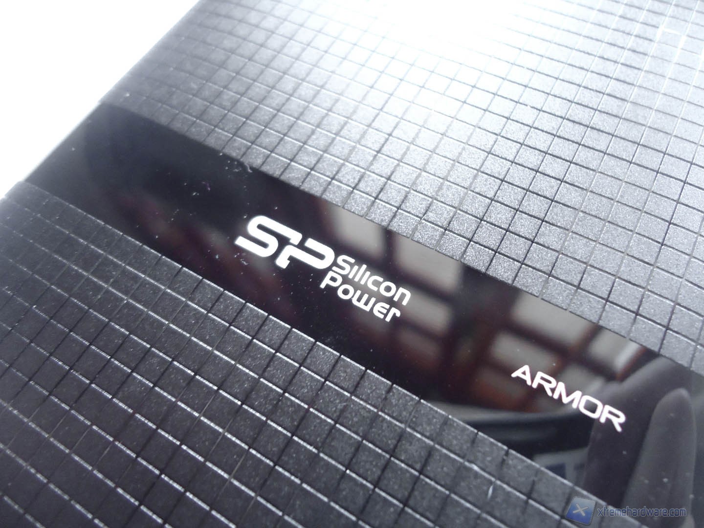 Togliendo dalla scatola in plastica il nostro prodotto, avvertiamo immediatamente l’elevato peso del device e il senso di robustezza che ci trasmette al tatto. Sulla parte frontale troviamo una texture a quadretti in colorazione nera mentre nella parte centrale troviamo una striscia in colorazione nera lucida sulla quale sono impressi il logo SP e la dicitura “Armor”. Grazie all’uso di questa texture a quadretti, il frontale dell’Hard Disk è resistente ai graffi.