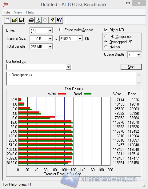 ATTO è un benchmark gratuito che esegue dei semplici test in lettura ed in scrittura in modalità sequenziale adoperando una Queue Depth (file in coda) di 4.