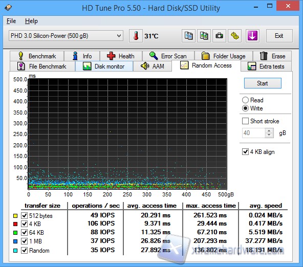 HD Tune Pro è un’utility per hard disks e SSDs con molte funzioni; può essere utilizzata per misurare in modo accurato le performance del nostro drive alla ricerca di errori, in quanto permette anche di monitorare lo stato vitale del drive, permette di cancellare i dati in modo sicuro e molto altro ancora. La versione da noi utilizzata è l'ultima disponibile al momento e si tratta della 5.00. Il programma è disponibile in due versioni, una freeware (HD Tune) ed una a pagamento (HD Tune Pro).