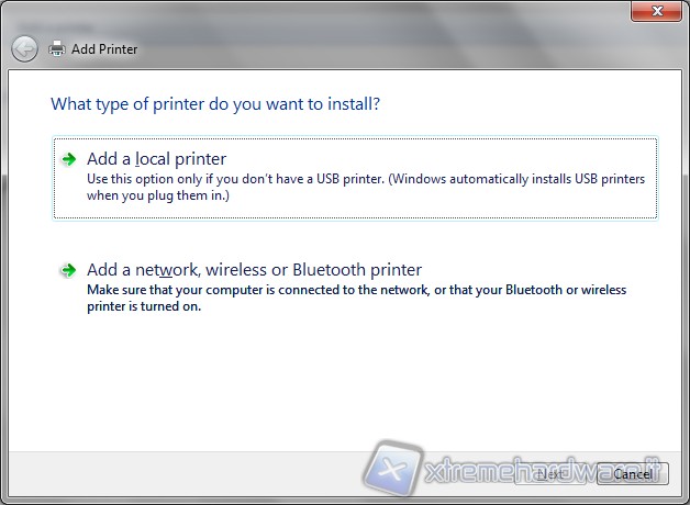 Da pannello di controllo selezionare Dispositivi e stampanti, e cliccare su Aggiungi una stampante.