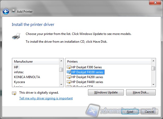 Selezioniamo la stampante in possesso, nel nostro caso una HP Deskjet F4180 e premiamo avanti. Dopo questa pagina vi verrà ancora richiesto il nome che vorrete dare alla vostra stampante e se volete condividerla, scegliete cosa preferite, ed effettuate alla fine una stampa di prova per verificare il corretto funzionamento.