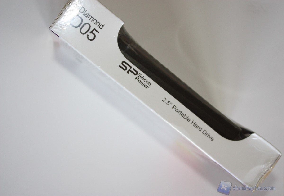 La confezione del Silicon Power Diamond D05 è in cartone leggero con un film di pellicola protettiva. L'estetica è molto essenziale e sono riportati i vari loghi che indenficano in maniera rapida e semplice il prodotto. La confezione presenta un'apertura che permette di prendere visione immediatamente del prodotto. La parte frontale della confezione riporta centralmente e sulla sinistra il marchio dell'azienda, il modello (nel nostro caso 1 TB) e le caratteristiche dello stesso. Poco più sotto troviamo alcune features del Diamond D05 tra cui la superficie superiore antigraffio, la connessione USB 3.0, un indicatore di stato dell'hard disk, la compatibilità con il sistema operativo Microsoft Windows 7 e infine il software SP Widget per il backup.