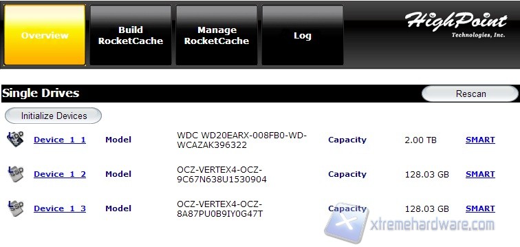 Per testare il controller HighPoint RocketCache 3240x8 abbiamo usato una piattaforma con chipset Z77 avente 8 Gb di RAM a 1866 MHz. PEr testare il RocketCache abbiamo utilizzato un Hard Disk meccanico Western Digital Caviar Green da 2 TB e due SSD OCZ Vertex 4 da 128 GB.